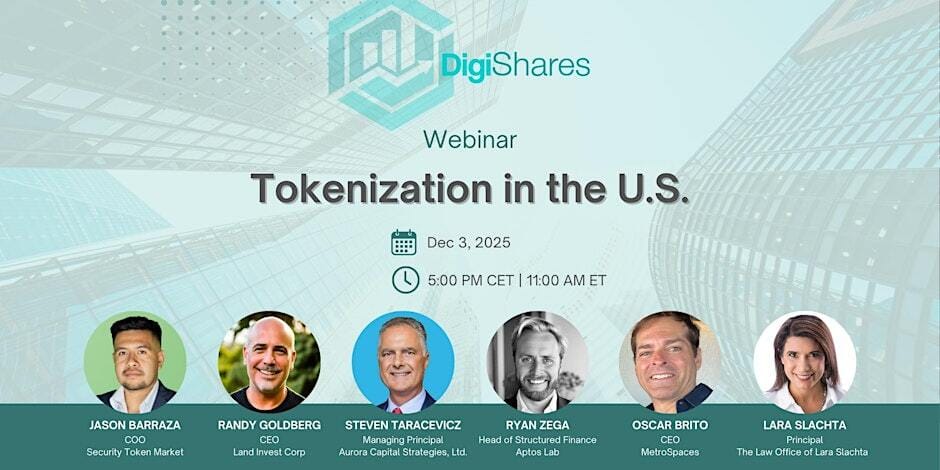 Make sure to join DigiSharesā webinar next week for a deep dive on what tokenization in the U.S. looks like, featuring perspectives from those in real estate, the blockchain layer, legal/compliance, and more! Iām excited to moderate this panel but of course feel free to BYOQ (Bring Your Own Questions) as this is meant to be as informative as possible.